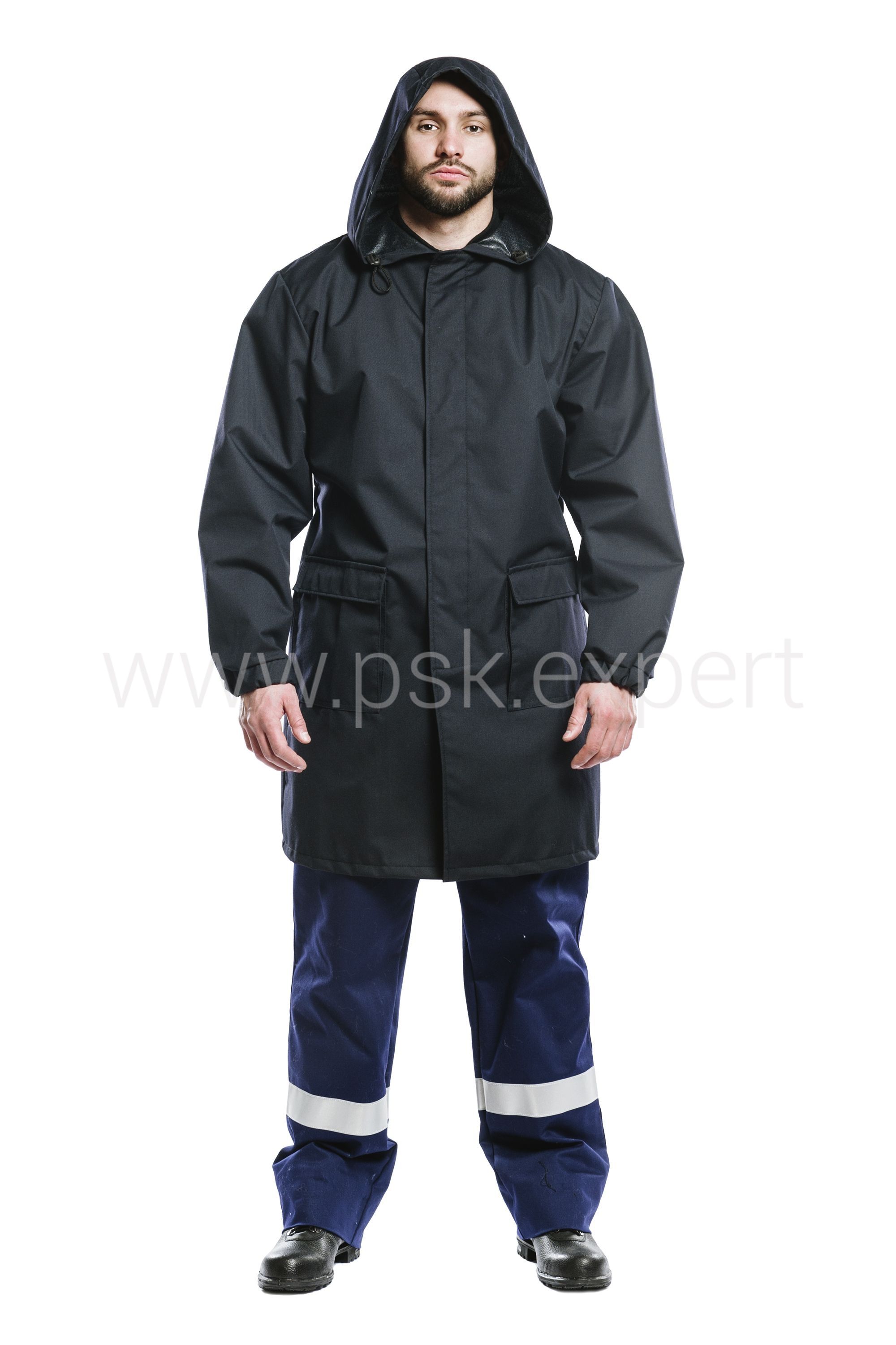 Плащ предназначен для защиты от воды и термических рисков. Плащ мужской укороченный прямого силуэта, с центральной бортовой потайной застежкой на пять пуговиц. Плащ с втачным капюшоном, боковыми накладными карманы и кулиской с эластичной тесьмой по линии талии спинки, для регулирования по обхвату. В манжетах рукавов эластичная тесьма для плотного прилегания. Уровень защиты от воздействия электрической дуги - 16 кал/см2. Плащ не должен использоваться вместо защитной куртки! Гарантийный срок хранения: 3 года с даты изготовления (при соблюдении условий хранения).