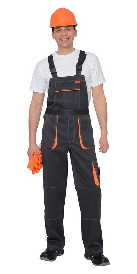 • Полукомбинезон - прямой с контрастной отделкой, с бретелями, с застёжкой спереди и с застёжкой в правом боковом шве на три петли и три пуговицы. Полукомбинезон с различными многофункциональными карманами, спинка с частичной стяжкой по талии для лучшего прилегания по фигуре.