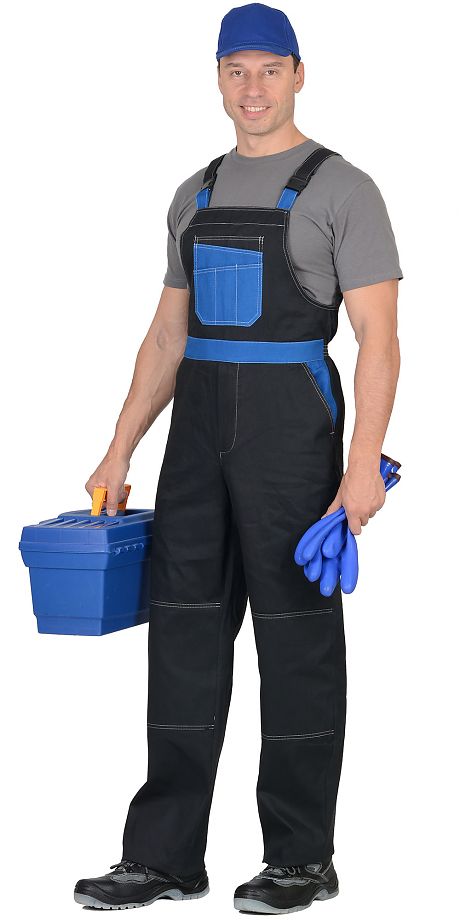 Полукомбинезон "СИРИУС-ГРАНД" чёрный с васильковым (100% узбекская саржа)