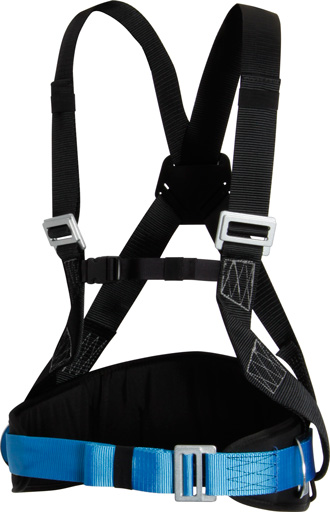 Имеется стальная точка крепления сзади на Х-образных регулируемых плечевых лямках для присоединения к системе удержания при срыве.