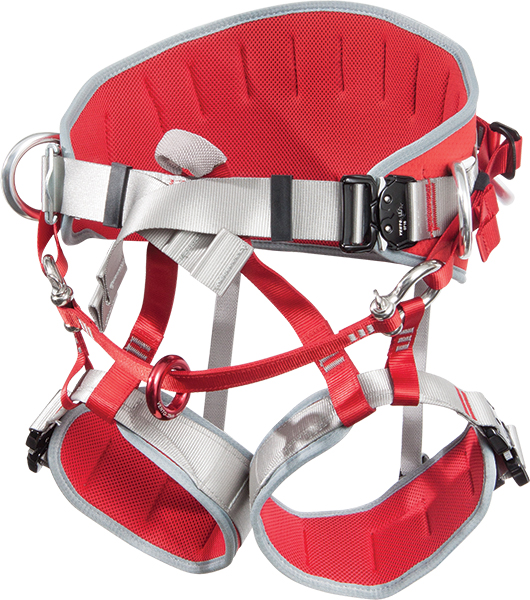 Широкий полужесткий пояс с дополнительной поддержкой поясницы, а также широкие накладки на ножных петлях обеспечивают комфорт при длительном нахождении в привязи.