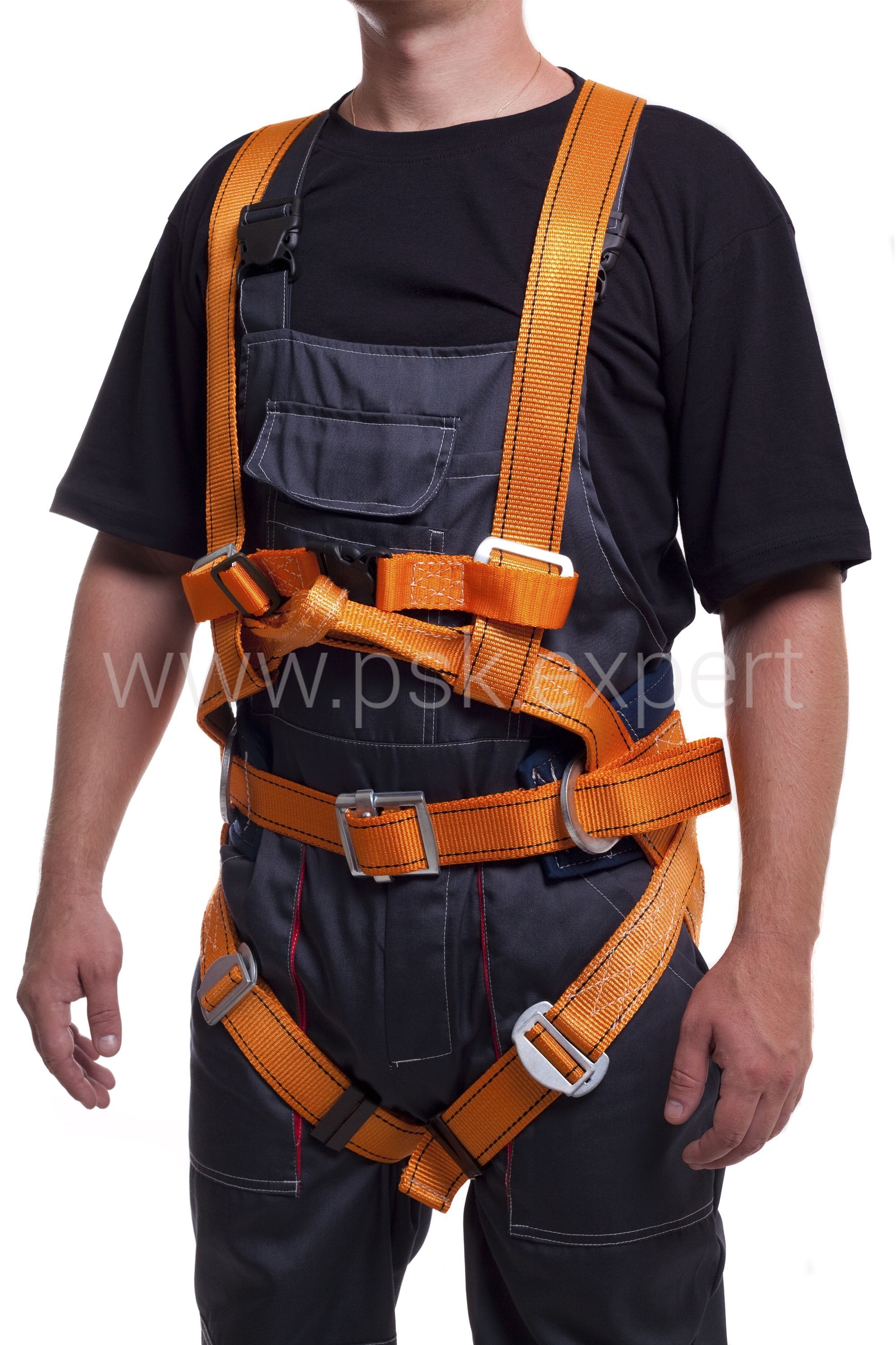 Страховочная привязь с наплечными и набедренными лямками- компонент страховочной системы для охвата тела человека для удержания и предотвращения падения с высоты. Высокий прошитый кушак. Четыре элемента крепления: два D-образных по бокам, одно на спине и анкерная петля на груди. Регулируемые застёгивающиеся пряжки на наплечных и набедренных лямках. Вспомогательная лента с застёжкой на груди позволяют быстро отстегнуть и пристегнуть привязь. Регулируемая величина обхвата талии: 740-1440 мм. Строп подбирается исходя из специфики задач. Вес страховочной привязи не более 2,0 кг. Нагрузка: не менее 15кН.