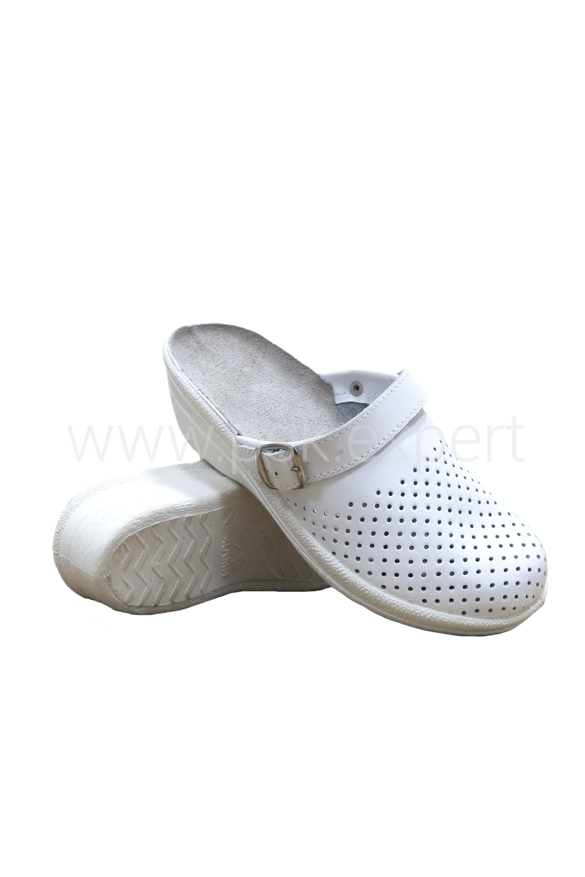Сабо классической модели из натуральной кожи с перфорацией верха (союзки), обеспечивающей эффективный воздухообмен. Широкая, удобная колодка в носочной части. Эластичная и износоустойчивая подошва из ПВХ. Ремешок для регулировки объема и плотной фиксации стопы, при желании может использоваться в двух положениях. Внутренняя стелька выполнена целиком из натуральной кожи. Модель может использоваться в медицине, сферах обслуживания и в повседневной носке.