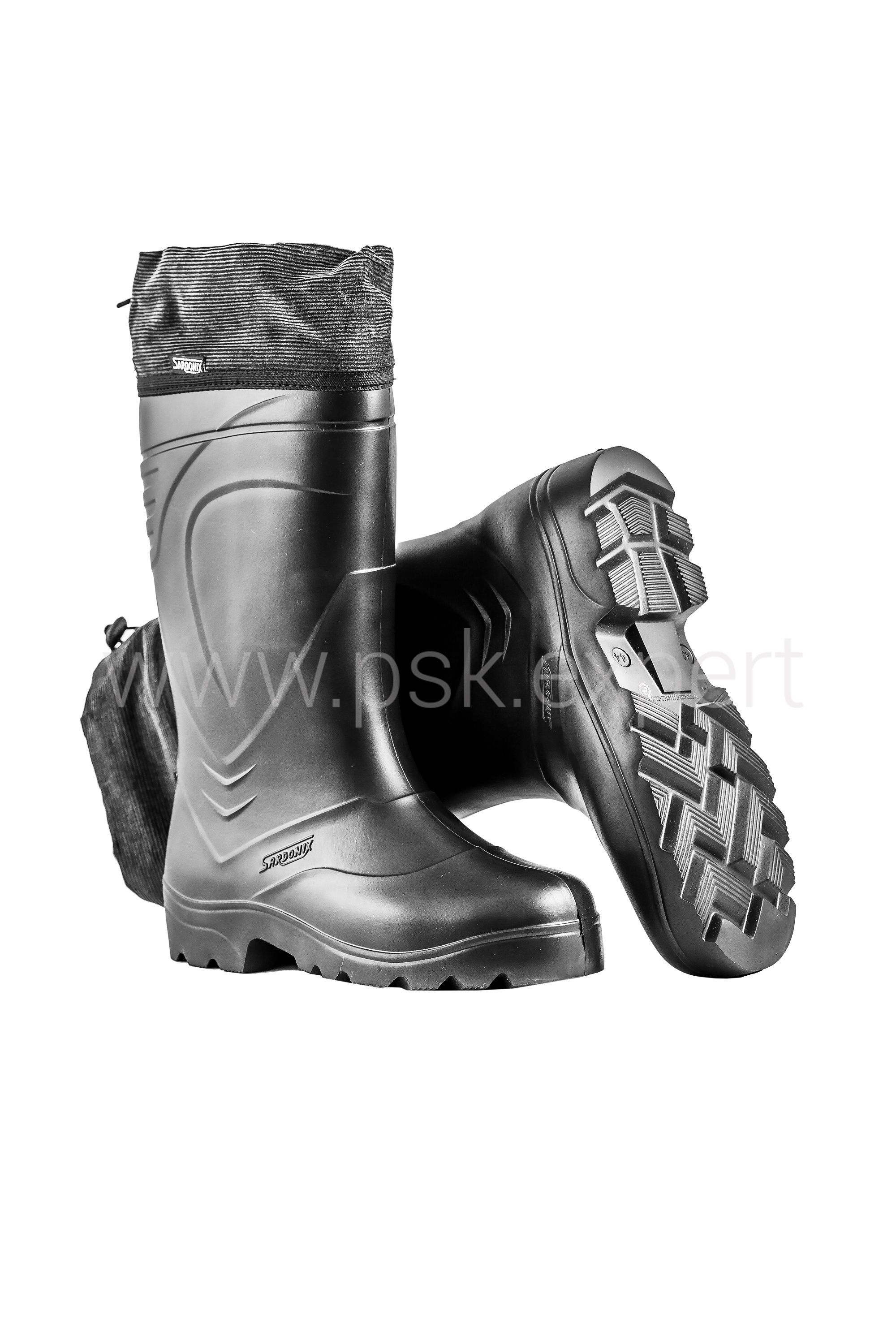 Сапоги выполнены из облегчённого полимера: этиленвинилацетата (ЭВА), обладают высокими теплоизолирующими свойствами, сохраняют тепло до - 30 С, абсолютно влагонепроницаемы. Обувь имеет дополнительную надставку из водоотталкивающей синтетической ткани и внутренний вынимаемый утепленный чулок из нетканого ворсового полотна. Небольшой вес сапог существенно экономит силы и придает дополнительный комфорт во время рабочей смены. Подошва имеет ярко выраженный протектор, очень устойчива и превосходно защищает от скольжения по ровным поверхностям. Модель обладает износоустойчивостью, эластичностью, амортизационными и антибактериальными свойствами. Рекомендовано для работников сельского хозяйства, промышленных предприятий, а также, может использоваться и в повседневной носке.