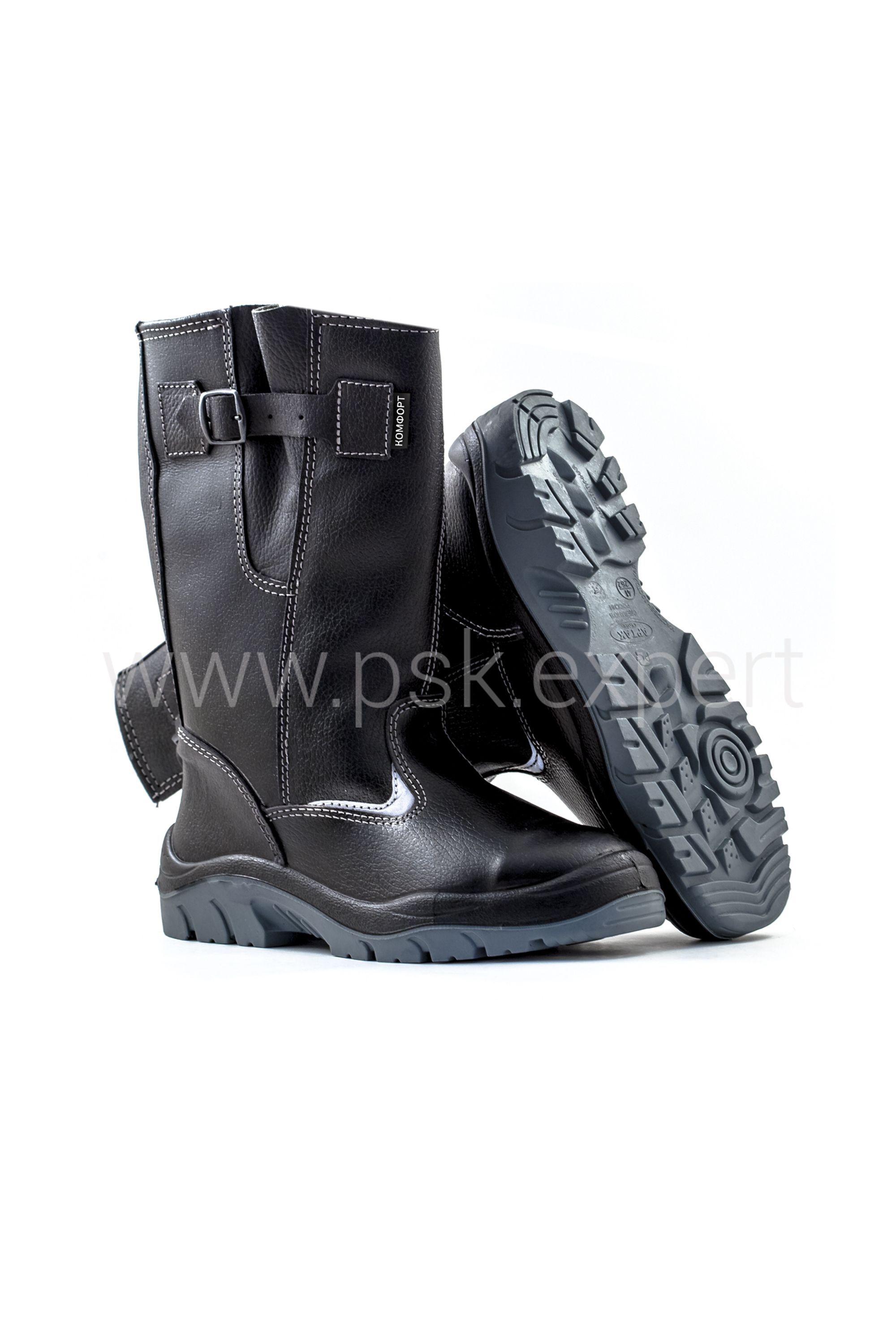 Модель универсального назначения, наиболее оптимальна для работ в нефтяной, газовой, химической промышленностях, машиностроении, сельском хозяйстве. Союзка и задник выполнены из натуральной кожи (юфть яловая толщиной 2,0мм). Высокое голенище из трехслойной кирзы дополнительно защищает ноги от внешних воздействий. Регулируемый по ширине ноги ремешок обеспечивает дополнительный комфорт во время работы. Термоустройчивая двуцветная подошва из полиуретана двойной плотности (ПУ-ТПУ) защищает от воздействия высоких и низких температур (от -30 до + 150), обладает повышенной прочностью и демпфирующими свойствами, обеспечивает надежную защиту от агрессивных сред (МБС, КЩС), имеет ярковыраженный протектор, эффективно препятствующий скольжению. Вкладная мягкая и удобная стелька эффективно распределяет нагрузку по всей поверхности стопы. Ударопрочный металлический подносок защищает носовую часть стопы от ударов силой до 200 Дж.