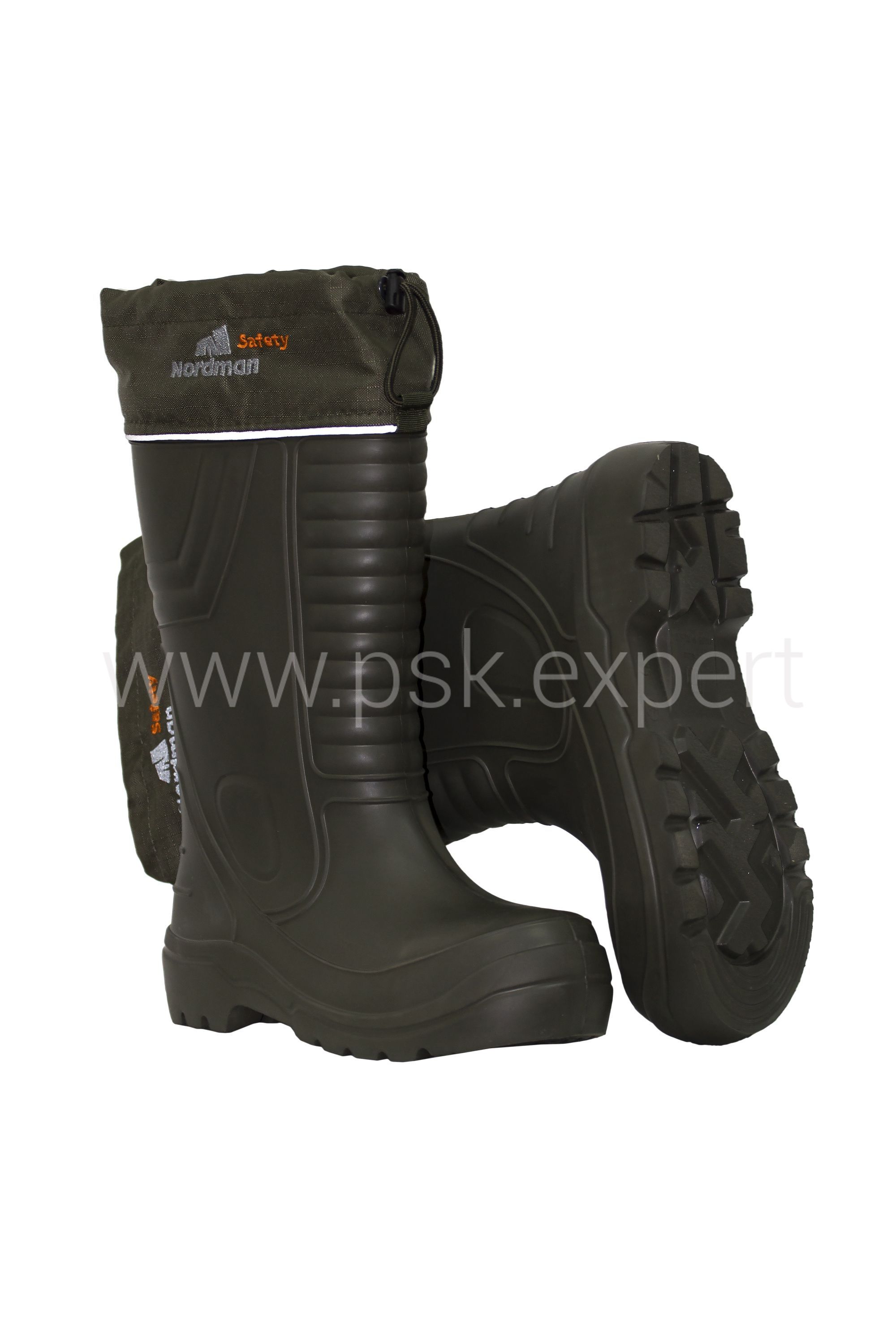 Сапоги используются в суровых зимних условиях, рекомендуется в качестве рабочей обуви для работников нефтегазового комплекса, сервисных и строительных компаний. Обувь выполнена литьевым методом целиком из термостойкого, эластичного и прочного полимера ЭВА. Сверху голенищ пришиты дополнительные регулируемые манжеты из водонепроницаемой ткани Rip Stop, которые защищает сапоги от попадания во внутрь влаги, снега и грязи. Многослойный вкладной чулок из шерстяного меха, слоя фольги, нетканого полотна превосходно сохраняет комфортное тепло до -45С. Внутрь встроен композитный подносок, выдерживающий нагрузку до 200Дж. Подошва имеет глубокий след (протектор), который эффективно препятствует скольжению по льду.