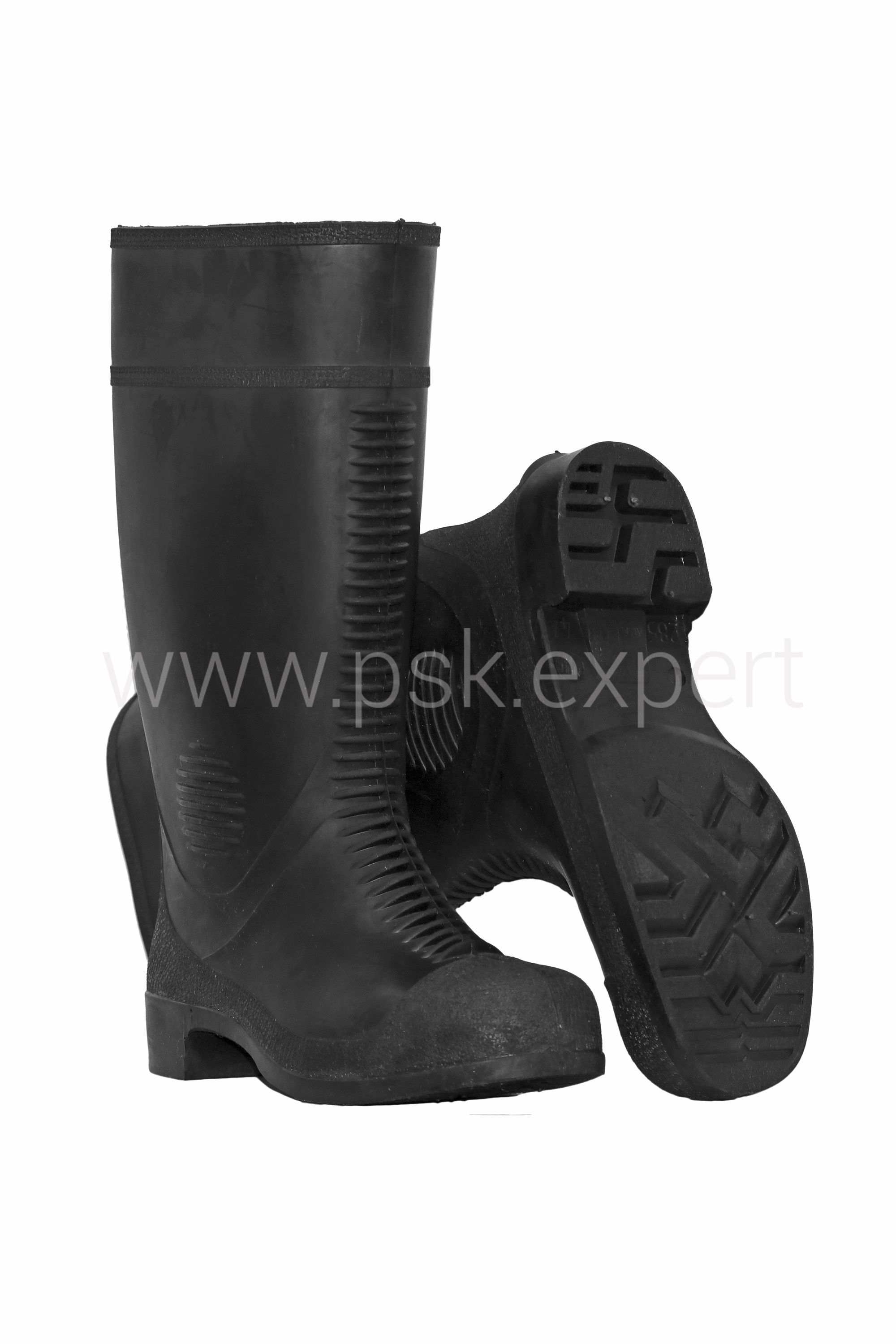 Сапоги формованные, изготовлены целиком из резины, имеют ребра жесткости на передней и голеностопной части стопы, подкладка из текстиля, внутри вложена стелька из войлока. Подносок усиленный эбонитовый, выдерживает нагрузку 15Дж. 100%-я защиты от воды, грязи и общепроизводственных загрязнений. Подошва имеет специальный рельеф, препятствующий скольжению.
