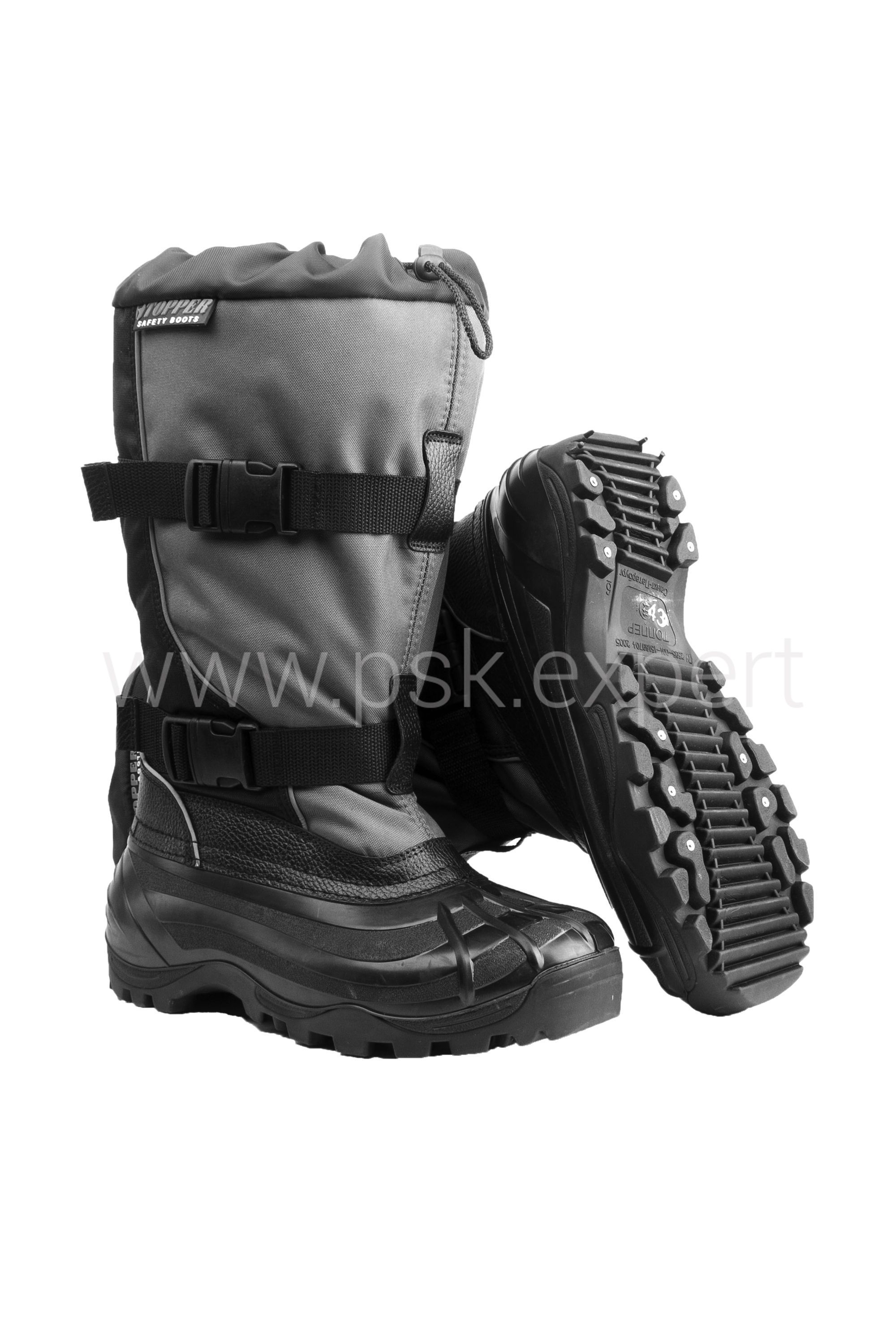Сапоги предназначены для использования в условиях воздействия низких температур и агрессивных сред. Конструкция верха позволяет фиксировать обувь на ноге с помощью двух ремней, длина которых регулируется фастексами. Манжет со шнуром защищает ногу от попадания во внутрь снега и влаги. Многослойный вкладной чулок удерживает тепло. Теплосберегающие свойства шерстяного полотна до -45С. Галоша МБС, КЩС изготовлена из литьевой резины, глубокий открытый протектор, стальные шипы на подошве эффективно препятствуют скольжению по льду.