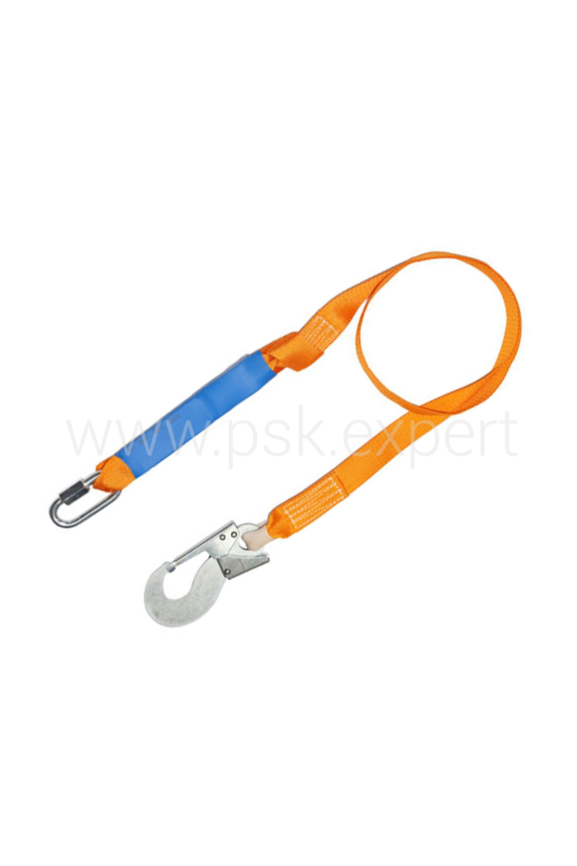 Страховочный строп из полиэфирной ленты с амортизатором, монтажным и соединительным карабином. Отдельно строп не может использоваться в качестве страховки при падении с высоты, только со страховочной или страховочно-удерживающей привязью. Предназначен для остановки падения рабочего при срыве с высоты. Строп упакован в водонепроницаемый пакет и содержит паспорт и инструкцию по применению. Соблюдать меры предосторожности, которые могут повлиять на работу стропа, например: острые кромки, режущие, абразивные или климатические воздействия, химические реактивы. Длина стропа 1,45 м +- 50 мм. Статическая нагрузка не менее 15 кН (1500 кгс).
