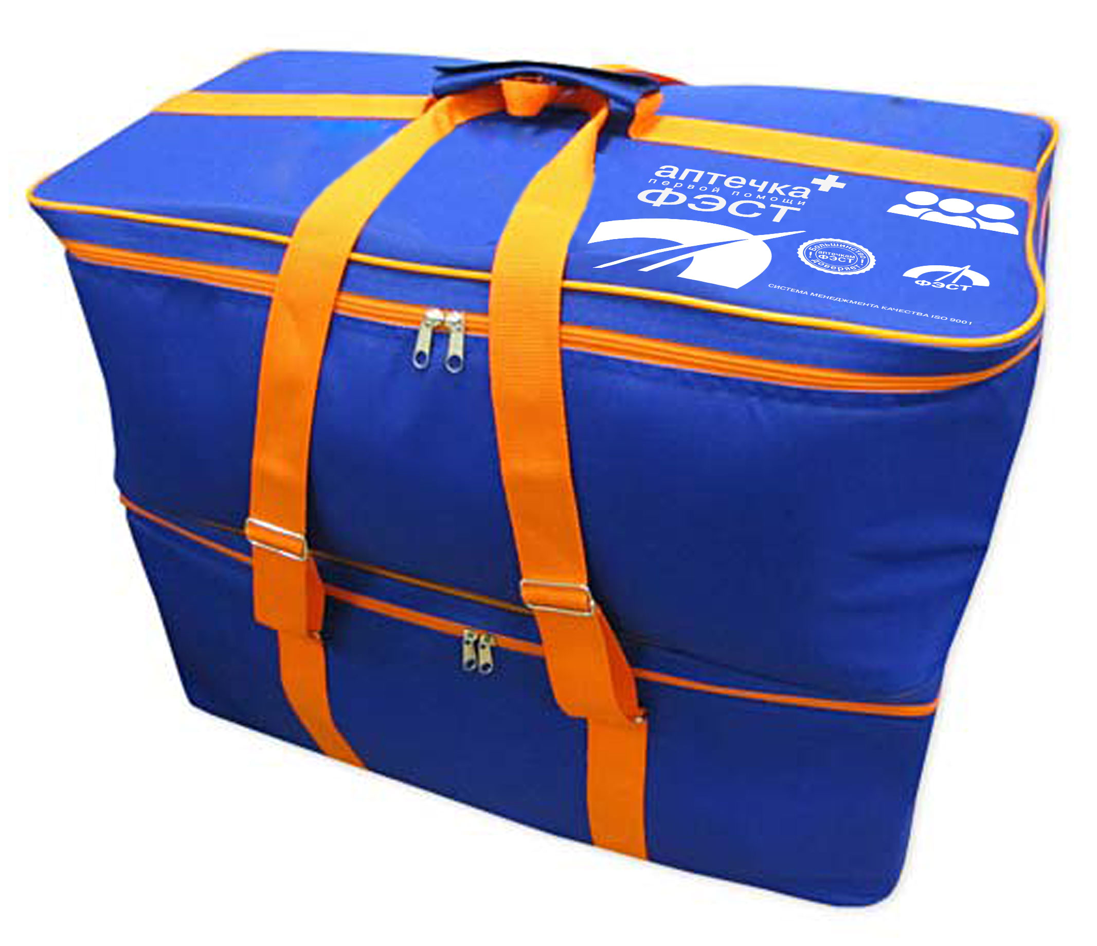 Укладка для оказания первой помощи пострадавшим на ж/д транспорте пассажирских поездов дальнего следования упаковывается в сумку.