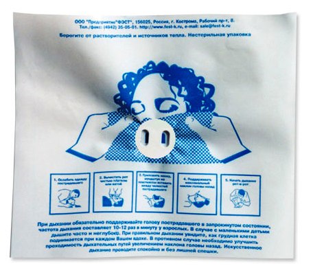 Устройство-маска полиэтиленовая с обратным клапаном для искусственной вентиляции легких разового использования. “Рот-устройство-рот”-“ФЭСТ” предназначена для проведения искусственного дыхания методом “рот-в-рот” у взрослых и детей вне медицинских учреждений.
