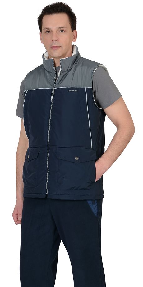 Жилет СИРИУС-КОЛЕС (на подкладке флис) темно-синий с серым
