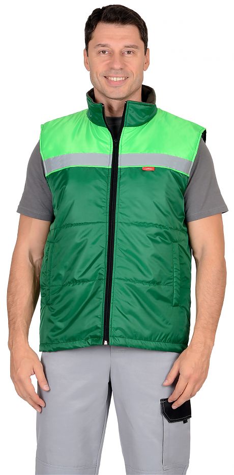 Жилет СИРИУС-ОЗЕЛЕНИТЕЛЬ утеплённый зелёный с салатовым и СОП 50 мм