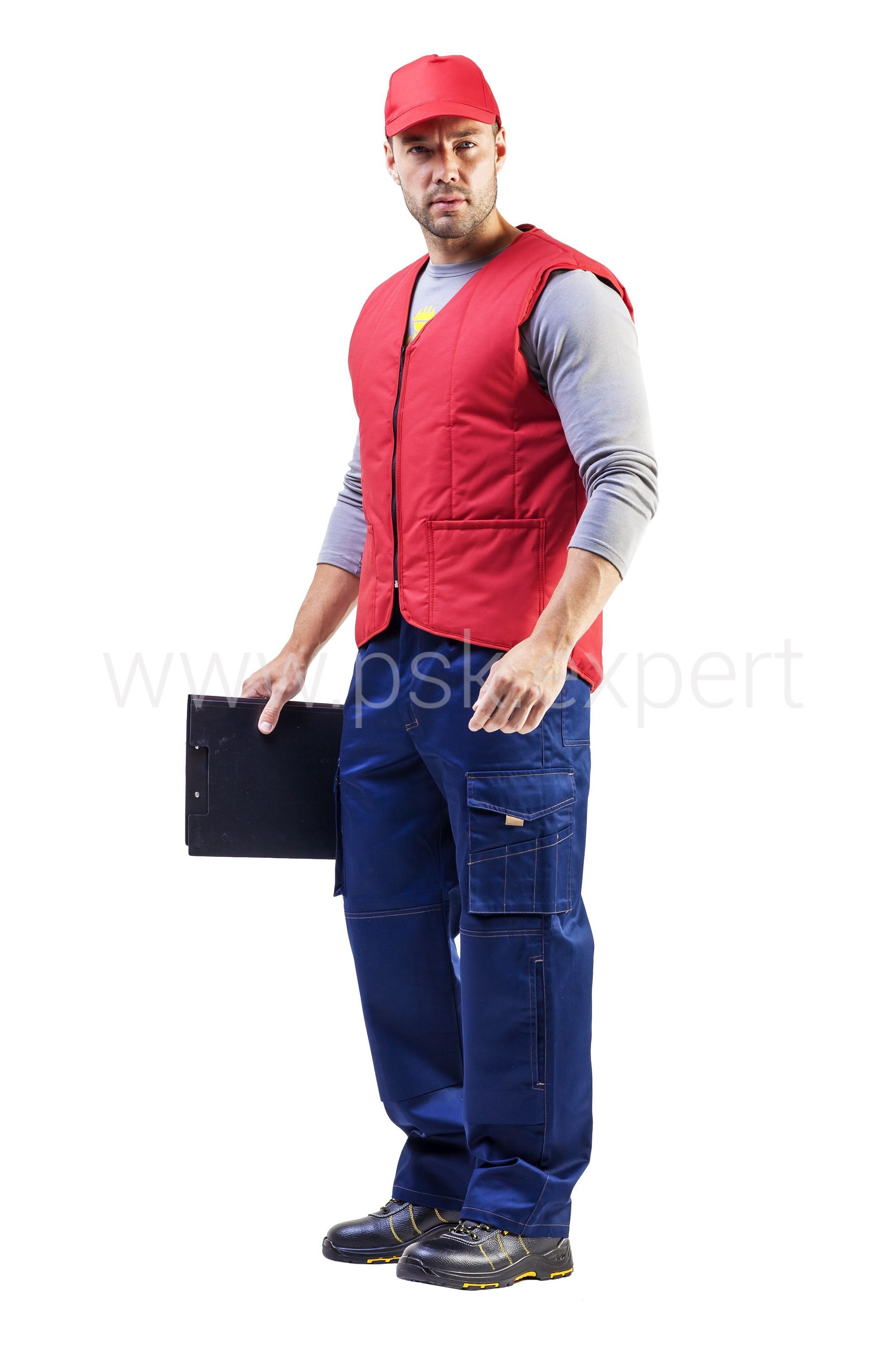 Жилет стеганый с центральной застежкой на молнию и с двумя накладными карманами.