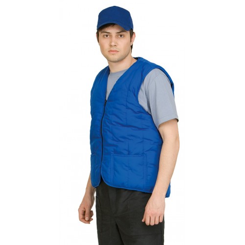 Жилет утепленный с застежкой на молнию и накладными карманами.